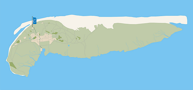 Folgen Sie dabei dem "Wüppspoor" bis zur Apotheke und biegen leicht links ab (immer noch Wüppspoor). Nach 50 m – vor dem Inselmuseum – biegen Sie scharf rechts auf "Westerloog" ein. Nach ca. 30 m befinden Sie sich auf "Noorderloog".